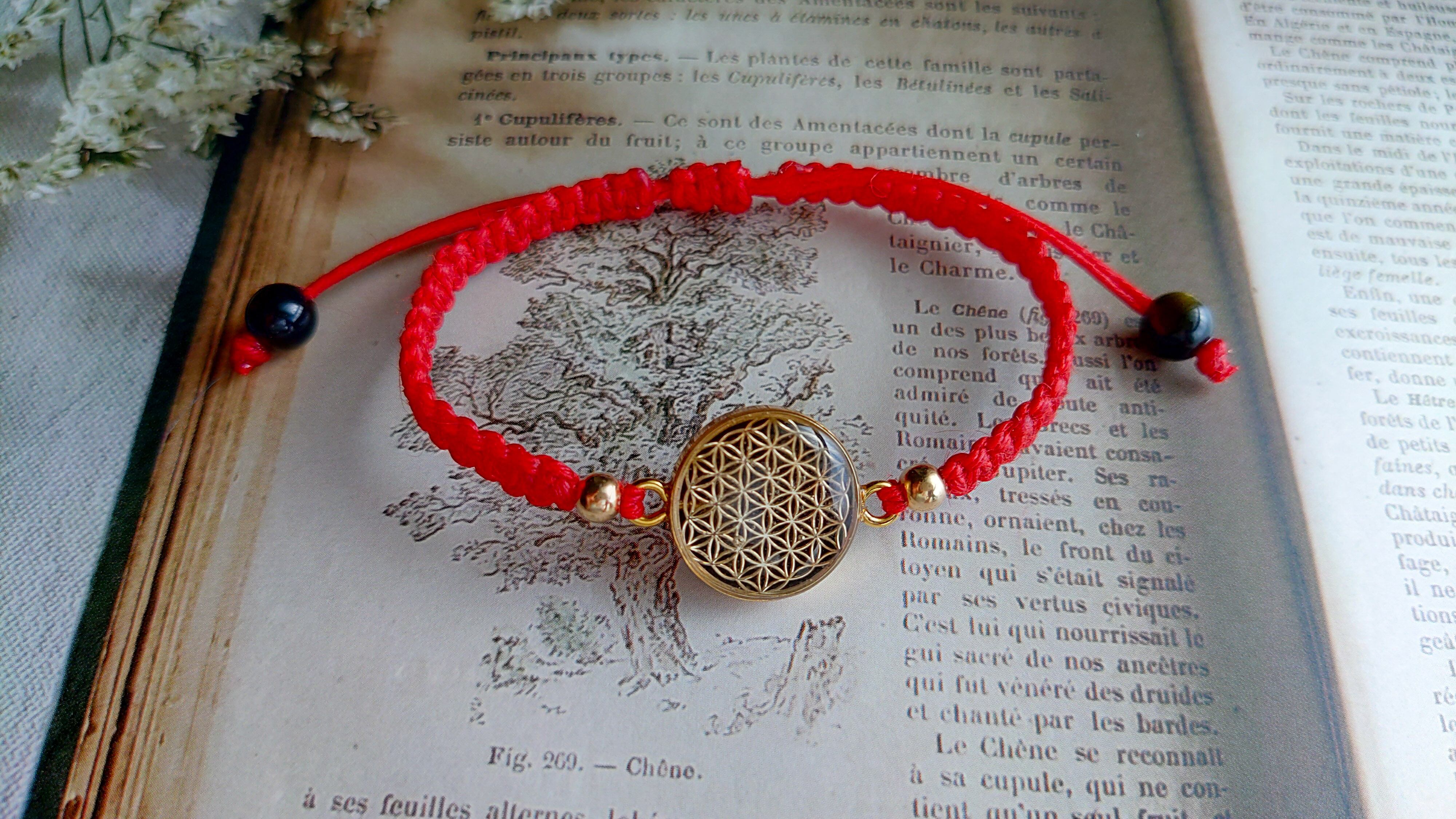 心身の安定感や生きる力、自然治癒力など人間の根本的な力に関係する 第1チャクラの色でもある赤色の麻紐で編み、ブレスレットにしました。
