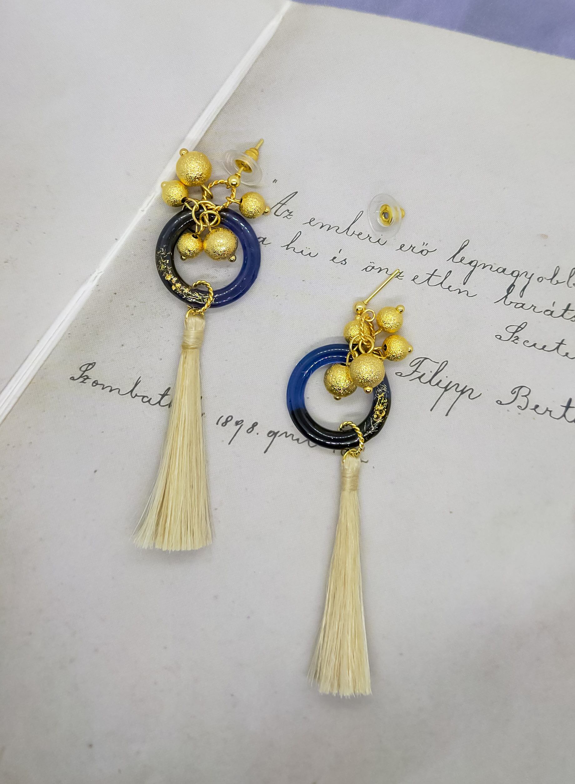 隕石と精麻タッセルの五十鈴ピアス[浅縹色]