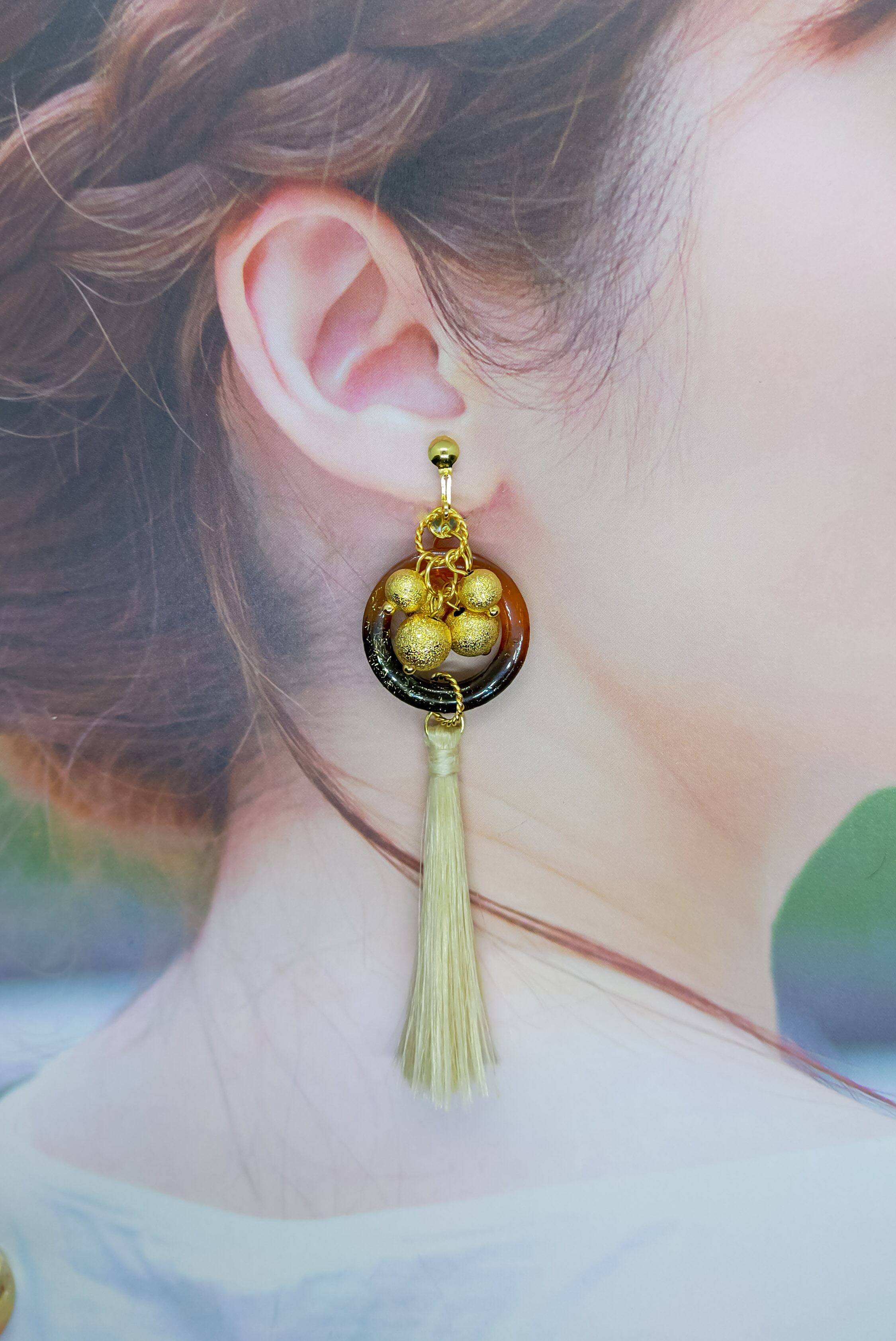 隕石と精麻タッセルの五十鈴イヤリング[琥珀色]